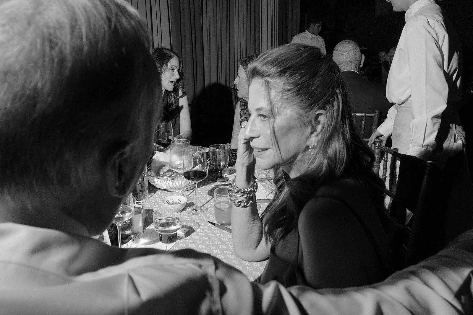 It’s simple, just dinner conversation, but it’s the most universal part of a wedding. I’m always curious about what’s being said, how they know each other, how they’re connected to the couple. I shot it low and close so it feels like you’re sitting there with them, because capturing that curiosity, that quiet connection, is the work.